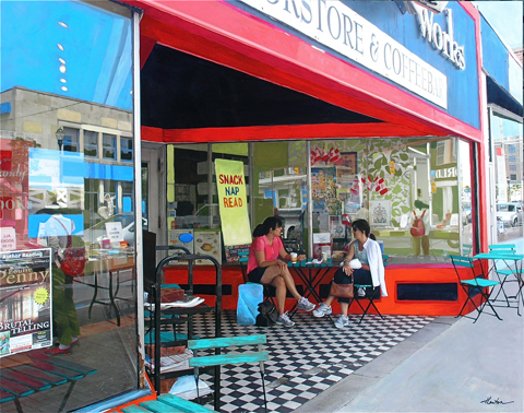 With audience participation and input, Jennifer Lawton paints her photograph during her demonstration April 1, 2012.